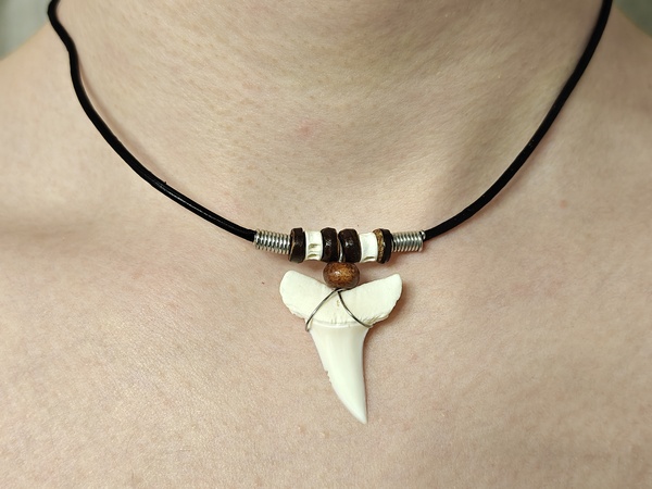 Амулет с зубом  акулы Мако с позвонками- отличный подарок на Новый год, день рождения, 23 февраля, 8 марта любимой, парню, девушке, сыну, дочке, другу, подруге, жене, мужу, коллеге по работе, для повседневного ношения, для поездки на море, отдых.