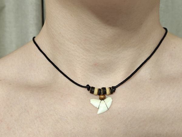 Амулет с зубом Тигровой акулы с кожаными бусинами